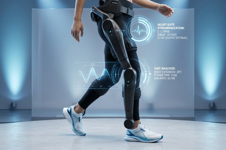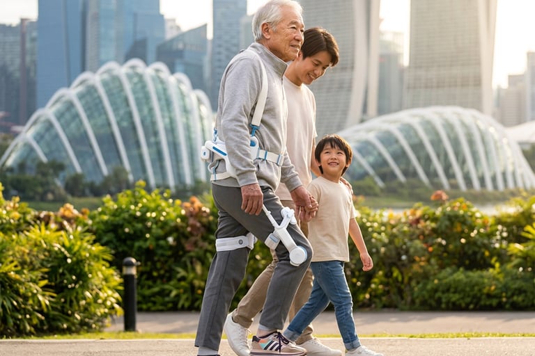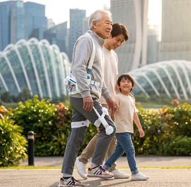 Our future-ready exoskeleton frames are engineered for the "Silver Economy." Crafted with a minimalist 'soft-tech' aesthetic and lightweight material, these devices are designed to feel like an extension of the body rather than a medical tool.