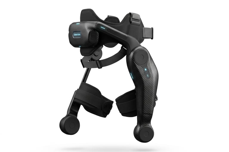 The Actuvo lower-body exoskeleton is a masterpiece of modern engineering. Utilizing high-strength carbon fiber for structural integrity and premium soft-touch materials for skin-contact points, the device offers a "second-skin" experience. It is lightweight enough for all-day wear while being robust enough to provide significant weight-assisted support.